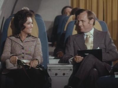 Creators David Davis and Lorenzo Music co-wrote this pilot, which establishes the basic show for the next six years. Not that there wouldn't be changes of course, if less dramatic ones than on the five years of The Brady Bunch, but the core settings and characters are here. We even see three of Bob's regular patients at the Fear of Flying workshop: Florida Friebus as Mrs. Lillian Bakerman, Noam Pitlik as Mr. Victor Gianelli, and of course Jack Riley as Elliot Carlin. Since this is one of my favorite shows, it's tempting to give the first episode a higher grade, but things haven't jelled yet. For one thing, Emily's toughness and humor have yet to emerge, to say nothing of the full daffiness of Howard. Also, it's hard to forgive Bob for laughing at her when she cries. But it's a good place to start. And notice that this was still the era when you could smoke on planes.