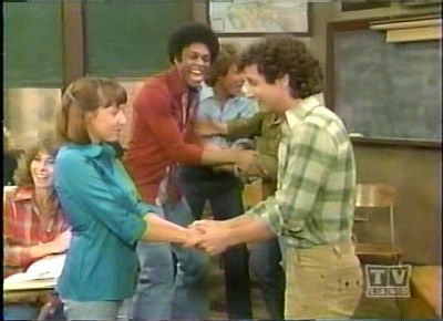 In this Perret & Richmond episode, Arnold's mother gets married offscreen to an Atlantic City blackjack dealer. (There apparently was another stepfather after Mr. O'Hara, that one a circus performer.) Meanwhile, he has a job working for Mary Johnson's unseen uncle, and he and Mary are falling in love. He doesn't want to move with his family (the brother and sisters are mentioned but also unseen) and ends up proposing to Mary. There are some sweet moments between them and, if we can ignore that whole "drunk Arnold" lapse, they have a good relationship, so it doesn't feel too rushed that they're getting married, not that I cared when I was eleven of course. (Janet getting married on Three's Company in '84 was a betrayal though, for reasons I'll go into then.)